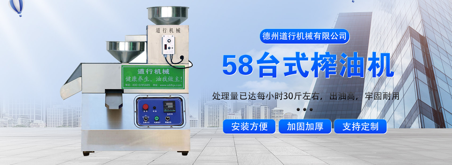 德州道行機械有限公司是一家從事榨油機、香油機、小型榨油機、小型商用榨油機、道行榨油機等食品機械研發(fā)生產(chǎn)的先進企業(yè)。我廠始建于2006年,歷史悠久,經(jīng)驗豐富,以先進的設(shè)備,贏得了廣大客戶的信賴。本企業(yè)是創(chuàng)新型、科技型、服務(wù)型、經(jīng)濟效益、社會效益、環(huán)境效益并重,多年來本企業(yè)研發(fā)人員不斷進取、不斷創(chuàng)新研發(fā)出了許多適應(yīng)市場需求的高、新、精產(chǎn)品。其中“道行”派系列產(chǎn)品獲得國家專利,專利號:ZL 2022 3 0783927.2 隨著時代的發(fā)展,綠色環(huán)保健康養(yǎng)生日益被社會各界所重視,以市場需求為需主,本企業(yè)技術(shù)人員從未放棄過對‘健康養(yǎng)生’綠色環(huán)保產(chǎn)品的研發(fā),經(jīng)過多年來的努力我們制造出了一系列環(huán)保產(chǎn)品,社會各界及眾多客戶的認可和一致好評。本廠主要生產(chǎn)產(chǎn)品“道行”牌香油機,小型榨油機等機械。型號齊全,可根據(jù)客戶的生產(chǎn)需求量為您量身定做!另外,本公司還提供定制產(chǎn)品及單一設(shè)備的設(shè)計、制造、安裝、調(diào)試和各項技術(shù)...